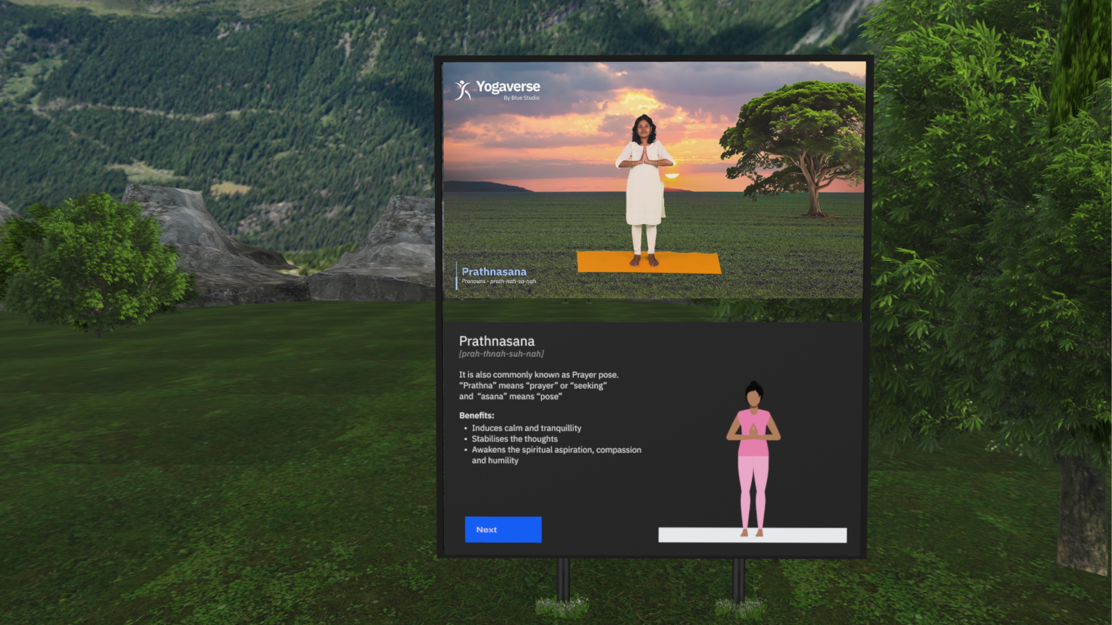 The goal of Yogaverse is to create an immersive, interactive, and accessible VR-powered yoga platform that enhances user engagement, learning, and mindfulness. By integrating real-time posture guidance, chakra and mudra-based practices, and personalized yoga journeys, Yogaverse aims to bridge the gap between traditional yoga and modern technology. The platform is designed to provide a holistic wellness experience, making yoga more engaging, inclusive, and effective for practitioners of all levels.